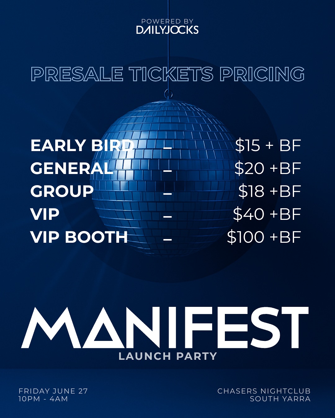 MANIFEST — Launch Party powered by DAILYJOCKS